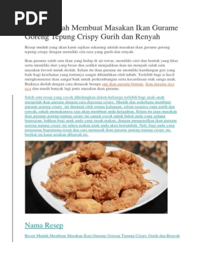 Resep Mudah Ikan Gurame Goreng Kipas Tepung Crispy